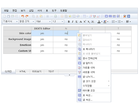 다양한 형태의 콘텐츠 작성은 물론, 강력한 표 작성 기능 등을 탑재하여 고객사는 보다 향상된 업무 시스템 개발이 가능해집니다.