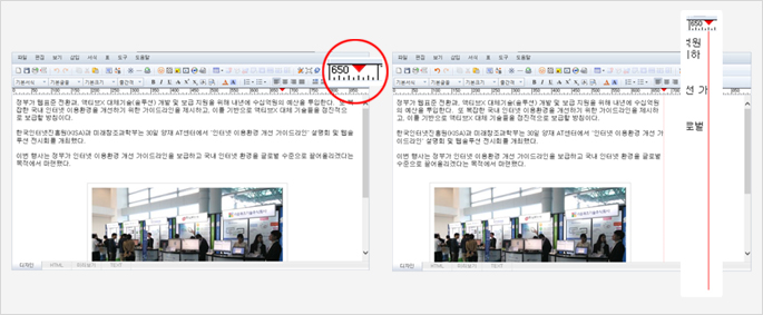 관리자에 의한 설정으로 A4 등 페이지의 사이즈 크기에 맞는 표식기능을 제공함으로써 특정 형태에 맞게 글 작성시 유용하게 사용 할 수 있습니다.