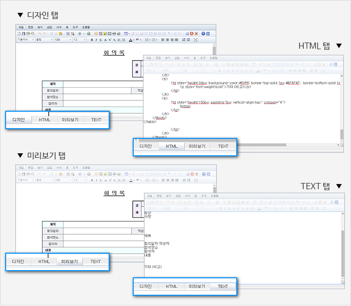 4가지 모드의 편집창을 지원합니다. 이로써 사용자는 보다 빠르고 편리한 편집이 가능합니다.
