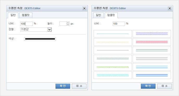 사용자가 직접 수평선 속성을 조절할 수 있으며, 다양한 디자인의 수평선 템플릿을 추가 제공합니다.